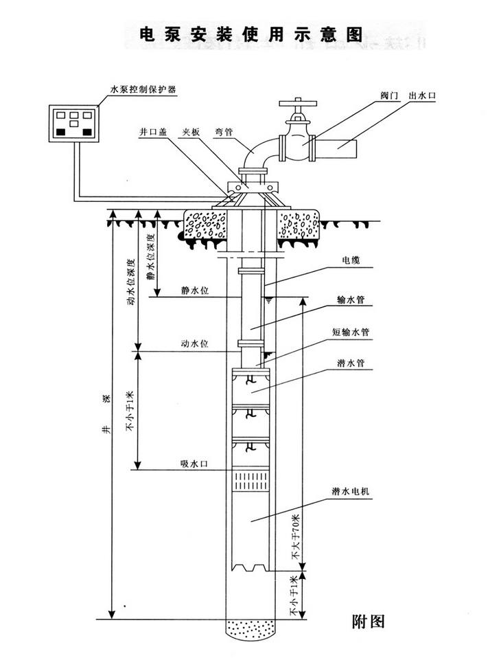 (12)保護(hù)開關和起動設備應配(pèi)有電壓、電流表、指示燈,並安(ān)裝在配電盤上,放在井台周圍(wéi)適當的位置。