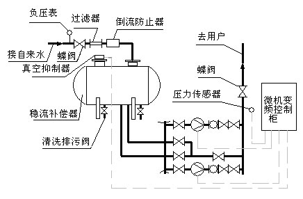 無負壓管網增壓穩(wěn)流成(chéng)套供水設備工作(zuò)原(yuán)理(lǐ)圖