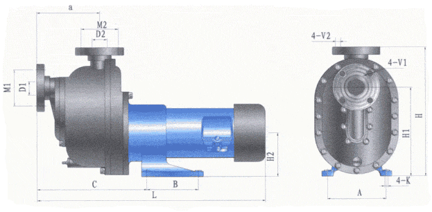 ZCQF型係列四氟(fú)耐腐蝕磁力自吸(xī)泵外形安裝尺寸圖