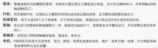 2、輸送介質為清水或物理化學性質類似清水(shuǐ)的其它(tā)液體。(輸送(sòng)介質帶有細小顆粒的應在訂貨時另(lìng)行說明,以便裝配耐磨式機(jī)械密封)。