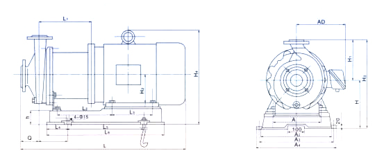 4.CQB磁力泵比CQ磁力泵的流量和揚程都(dōu)要大。