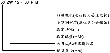 六、ZWPB型係列(liè)防爆排汙不鏽鋼自吸泵型號意(yì)義