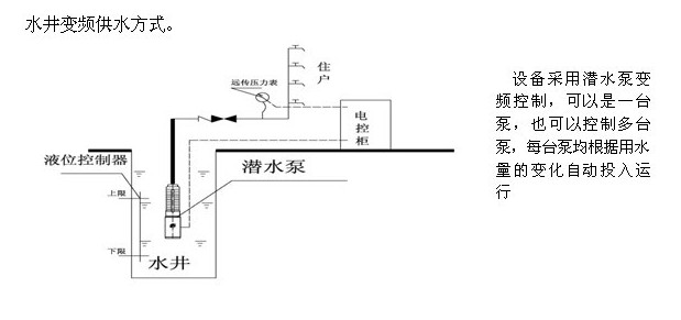 1、變頻供水設備與市政管(guǎn)網並網恒(héng)壓供水,在供(gòng)水壓力可滿(mǎn)足需要時,自動停運全部水泵。否則,恒壓供水設備起動,增大壓力(lì)滿足(zú)用水要求。