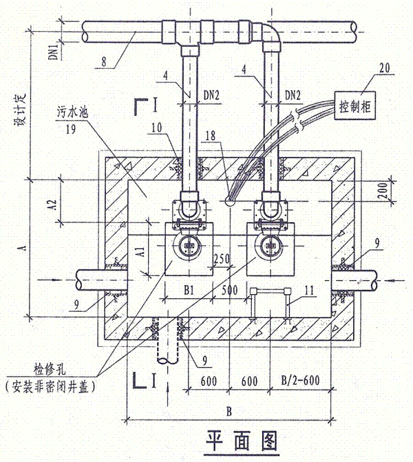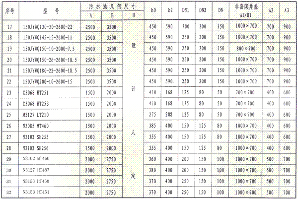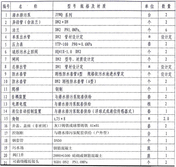 注:設計人員也可根據實際情況確定汙水池(集水坑)的平麵尺寸。汙水池(chí)(集水坑)深度應小於等於6.0m