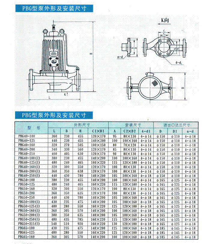 PBG屏蔽式管道泵安裝尺寸(cùn)圖