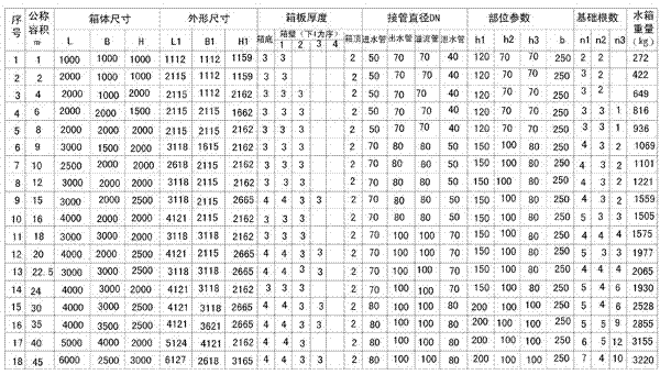 裝配式鋼板給水箱選用表(一)