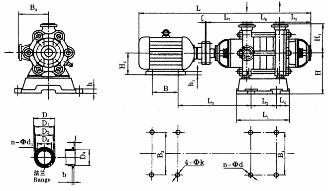 D型泵進出口法蘭安裝尺寸表