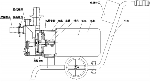 移動式果汁飲料,酒類,醬油及醫藥,石(shí)油化工等近似水類液體的輸送自吸泵結構示意(yì)圖