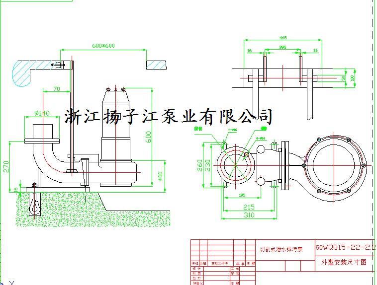 50WQ帶刀潛水排汙(wū)泵帶耦合裝置CAD安裝尺寸圖
