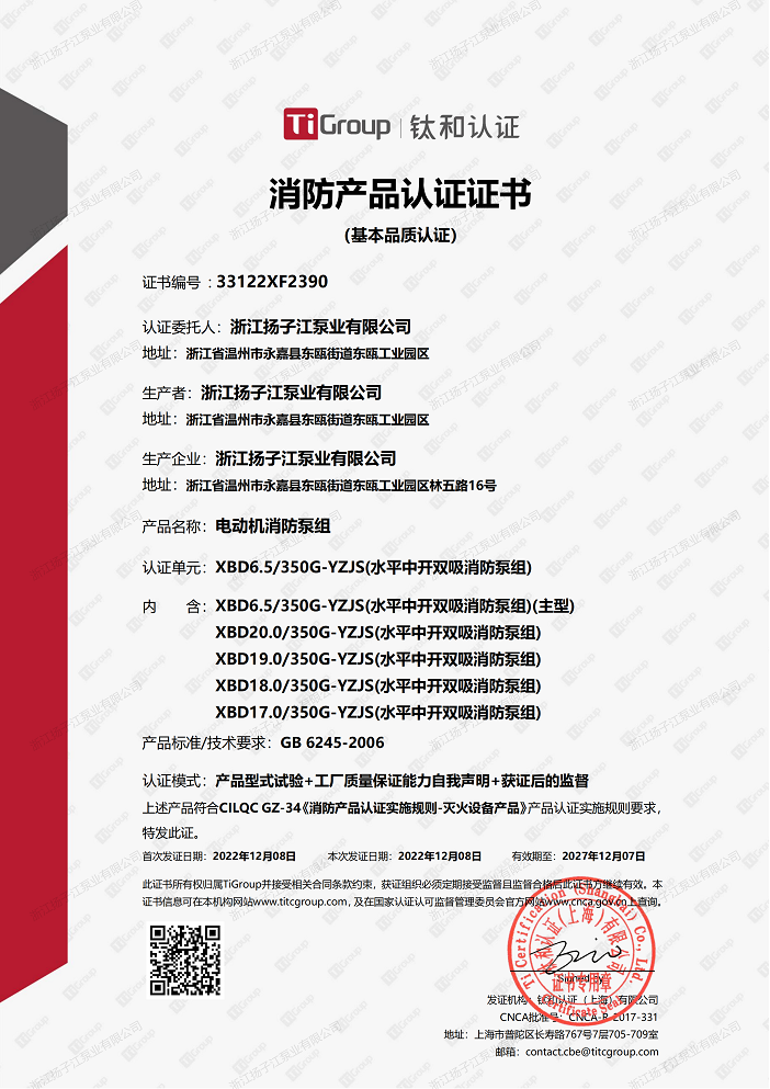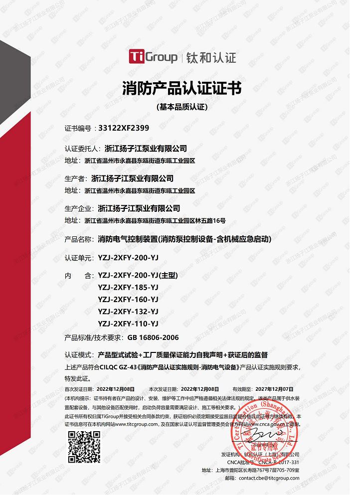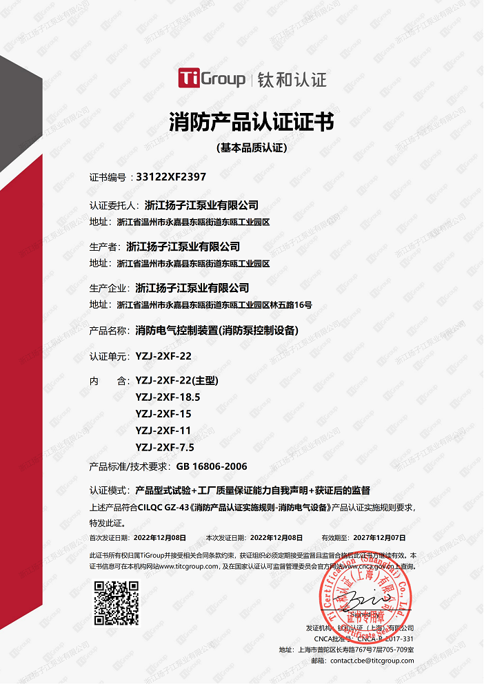 日前,浙(zhè)江香蕉视频网站江泵業順利通(tōng)過消防泵柴油機消防(fáng)泵穩壓成套及控製櫃消(xiāo)防電氣控製裝置消防產品認(rèn)證.