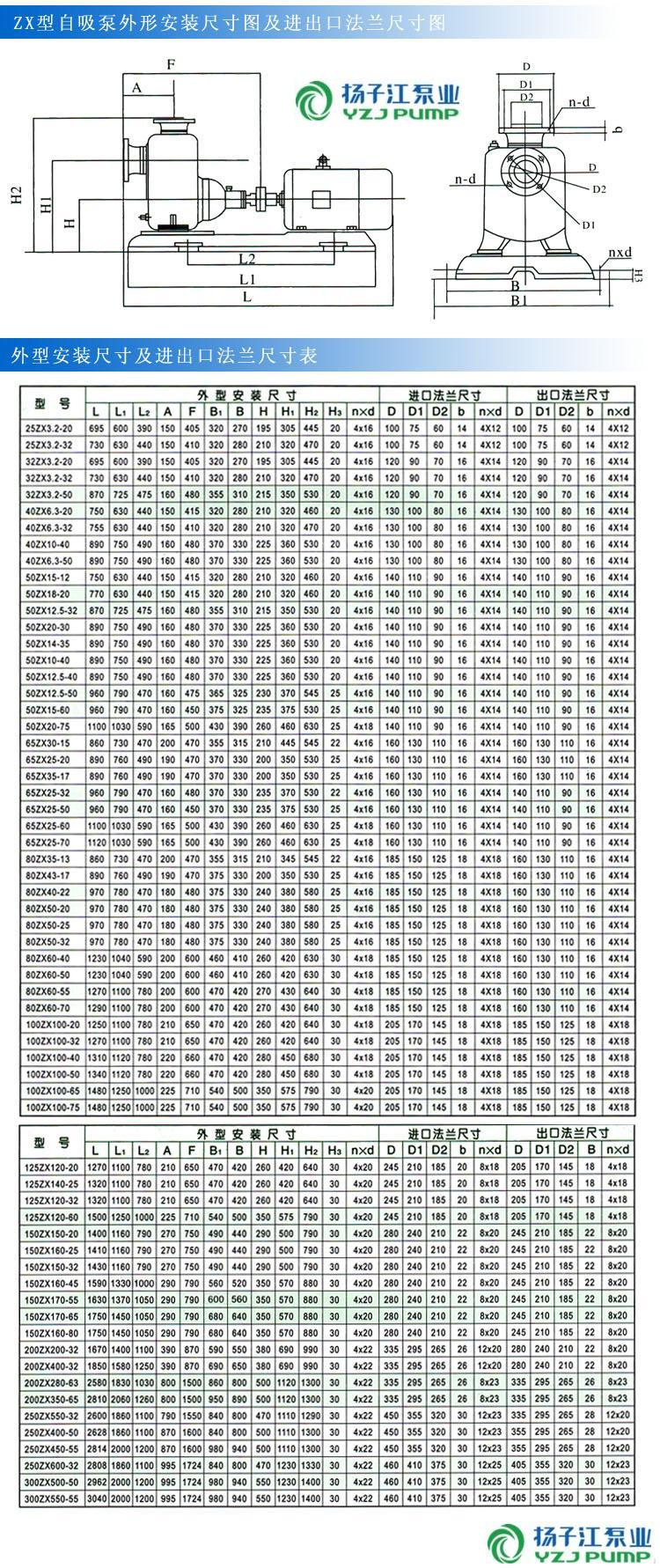 ZX係列臥式自吸(xī)離心泵(安裝尺寸)