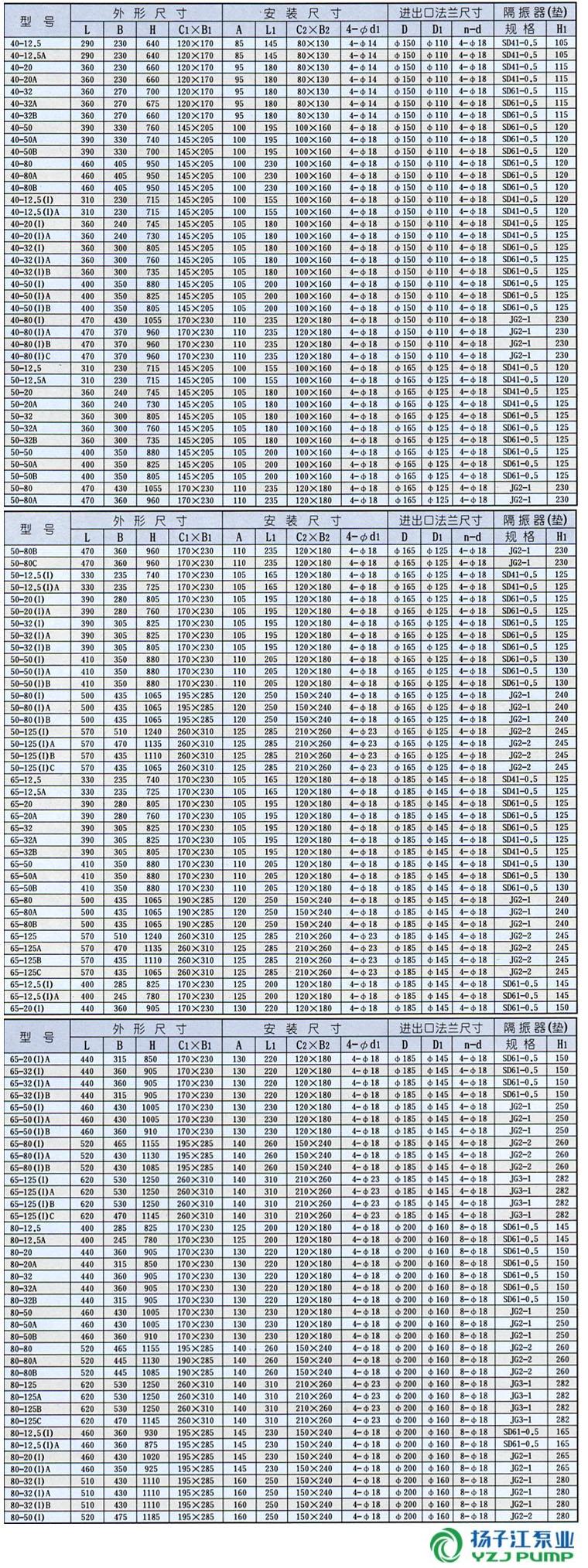 ISGB型便拆立式管道離心泵(bèng)安裝尺寸表: