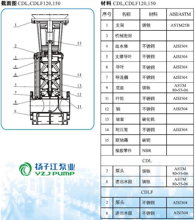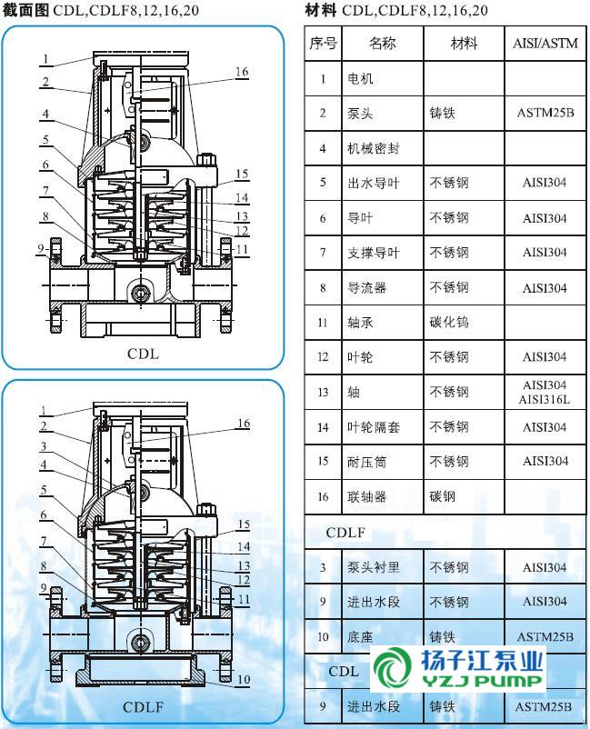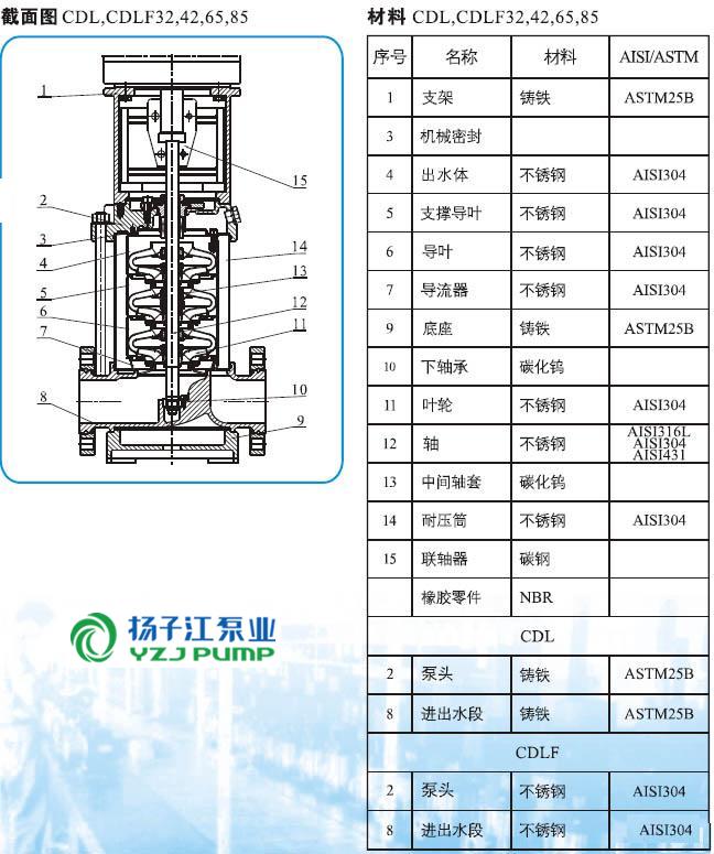 CDLF係列輕型不鏽鋼(gāng)立式多級泵(結構圖)