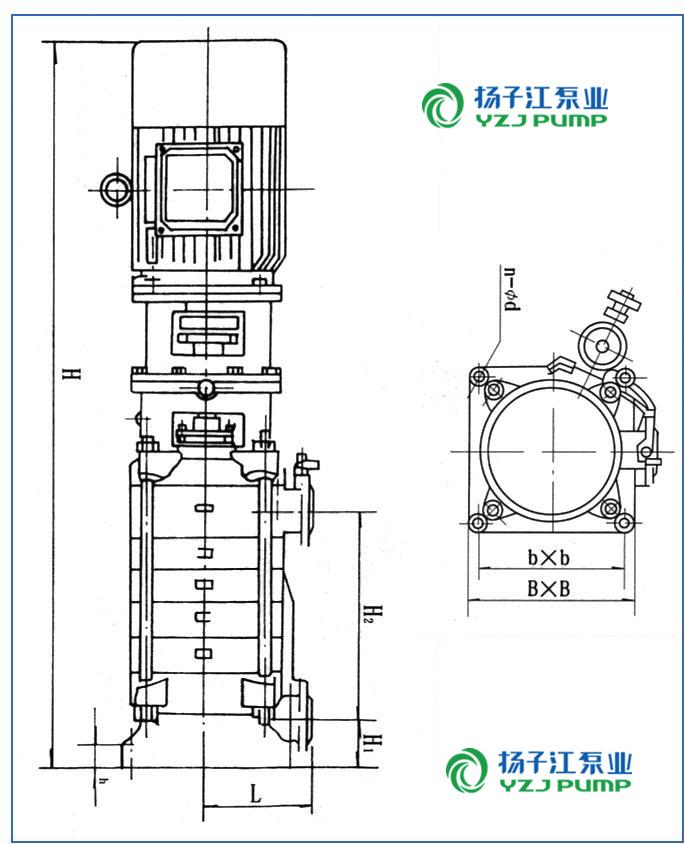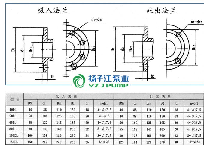 DL係列立式(shì)多級離心泵(bèng)法蘭安裝尺寸: