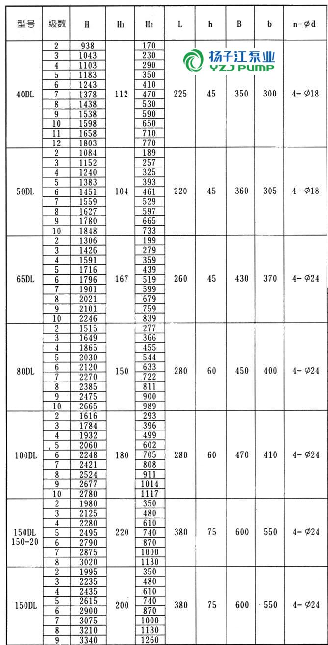 DL係列立式多級離心泵(bèng)安裝尺寸(cùn)表: