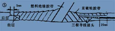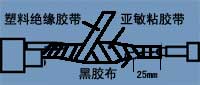 2:用塑料絕緣膠帶包紮三層,兩端超過前一層5mm以上。
