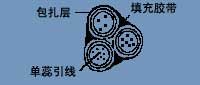 4:包紮三根單蕊引導線時,把(bǎ)亞敏膠帶卷成三角形狀墊入空隙處。預防滲入水中。
