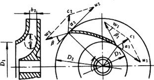 離心泵理論壓頭為HT:  (2)流量對理論壓頭的影響  其中: ; r2—葉輪外半徑; ω—葉輪旋轉角速度(dù); qV—泵(bèng)的體積流量; b2—葉片(piàn)寬度(dù); β—葉片裝置(zhì)角。 (3)葉片形狀對理論壓(yā)頭(tóu)的影響 當泵轉速n、葉輪直徑(jìng)D2、葉輪出口處葉片寬度b2、流量qV一定時(shí),HT隨葉片形狀β2而變。 ①徑向葉片,β2=90,Ctgβ2=0,HT= 與qV無關(guān); ②後彎(wān)葉片, ③前彎葉片, 討論: ①裝(zhuāng)置角β是(shì)葉(yè)片的一(yī)個重(chóng)要設(shè)計參數。當其值小於90度時稱為後彎葉片,此時液體流動能量損失小,所以一般都采用後(hòu)彎葉片; ②當采用後彎片時,Ctgβ為(wéi)正,理論壓頭(tóu)HT隨(suí)葉輪直徑、轉速及葉輪周邊寬度的增加而(ér)增加,隨流量的增加(jiā)呈線性規律下降; ③理論壓頭與流體的性質無(wú)關。 |