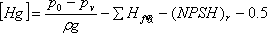 ③由(NPSH)r計(jì)算泵的大允許安裝高度[Hg] 一台泵的必需汽蝕餘量(NPSH)r數值由泵的生(shēng)產廠家提供,供用戶計算泵的(de)大允許安裝高度[Hg]: (m) 離心泵的(de)實際安裝高度隻要低於大允許安裝高度[Hg]就不會(huì)發生(shēng)汽蝕。