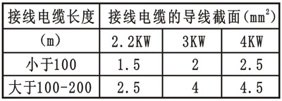 3.電壓波動允許在342-418伏之間(jiān)。如電泵使用地距電源較遠,應按下表電纜(lǎn),接頭盡可能減少。