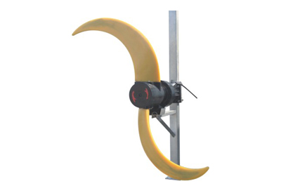 QDT型低速推流器,在水處理工藝流程中,廣泛應用於氧化溝推流,各類生化池的(de)攪拌,同時也可用於河流防(fáng)凍(dòng),景觀水循(xún)環等。低速推流(liú)器油(yóu)潛水電機、減速裝置、葉槳和安裝係統等組成。其特點是配套功率小(1.5-7.5KW),轉速低(36-135r/min),葉槳直徑大(1000-2500mm),低速旋轉,產生(shēng)大體積流場,服(fú)務範圍廣。後掠式(shì)香蕉型葉槳設計,具有自潔功能,采用聚氨脂或鋁合(hé)金材(cái)質精鑄成(chéng)型,具有重量輕、強度高、耐腐蝕等優點,其(qí)優異的摩(mó)擦性能,可保證在低速的運(yùn)動狀態下與液體產(chǎn)生良好的阻尼效果,從而創(chuàng)建出柔和的水流。該係列產品除了具有推流和創建水(shuǐ)流的作用外還具有攪拌功能。
