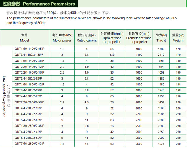 QDT型低(dī)速推流器選型參考: