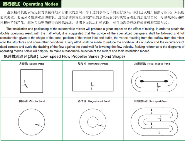 為(wéi)了(le)保證潛水(shuǐ)攪拌機的正常工作,請正確選擇工作環(huán)境和運行(háng)模式。