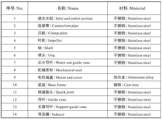 (2) 泵關鍵零部件泵體、導葉、葉輪、泵軸等與水有直接接觸的均(jun1)采用(yòng)不鏽(xiù)鋼材料製造。