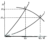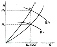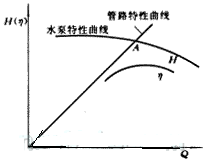 設計工作點為(wéi)A,水泵流量為QA,揚程為HA.水泵實際運行時管路特(tè)性曲線(xiàn)不是Ⅰ,而是Ⅱ,運行工作點為(wéi)B,流量QBA,且B點不(bú)在水泵高效區. 顯然這比(bǐ)第一種情況更為不利(lì).解決的唯一辦法隻能更換(huàn)水(shuǐ)泵.