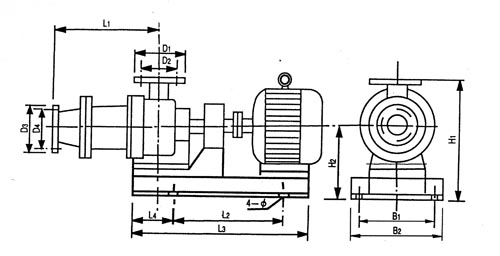 I-1B係列單螺(luó)杆濃漿泵由電(diàn)動(dòng)機、聯軸器、泵和底座四個部分組成(chéng)(見附圖)。