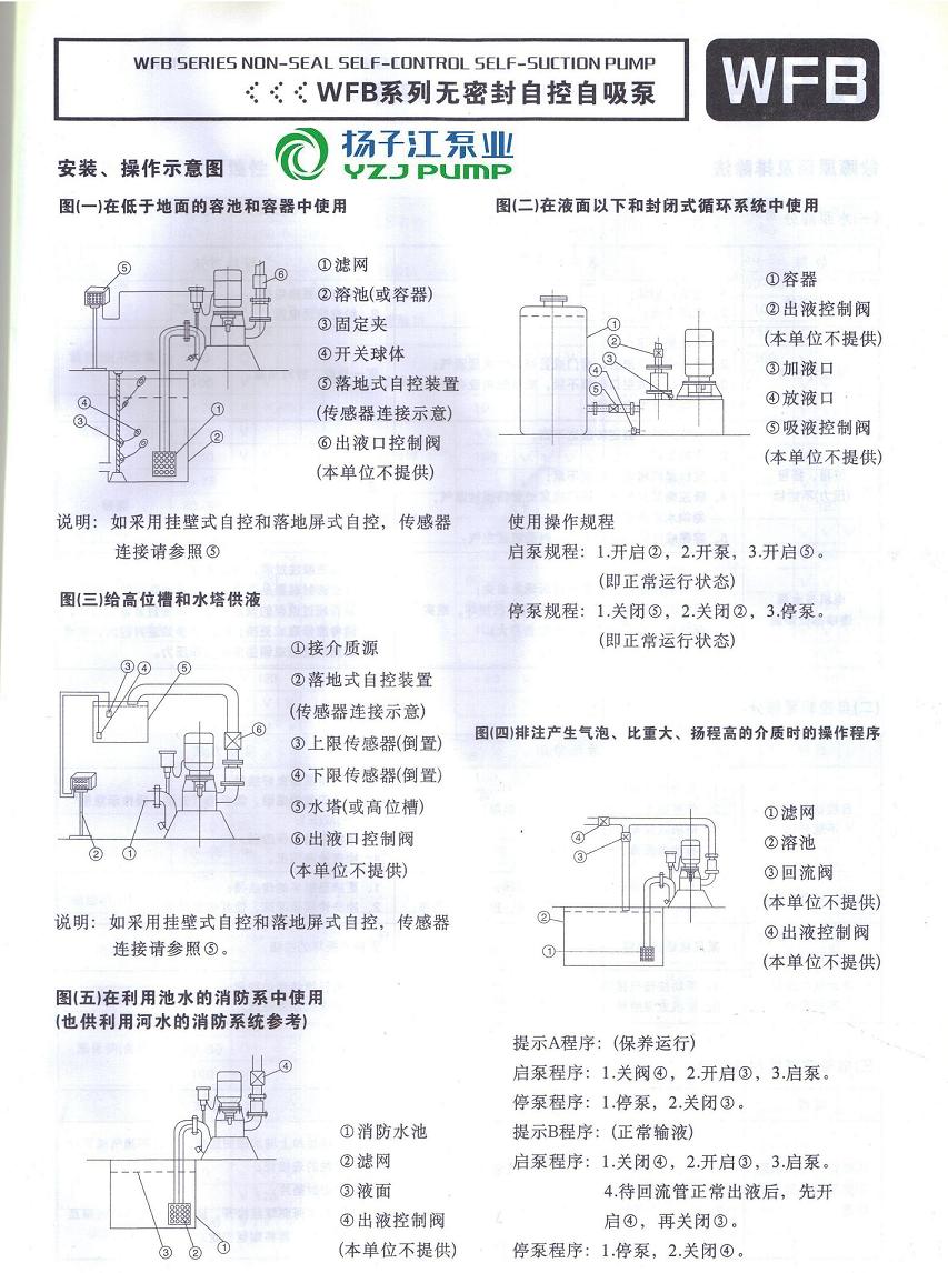 WFB型無密封(fēng)自控自吸泵安裝操作示意圖(tú)