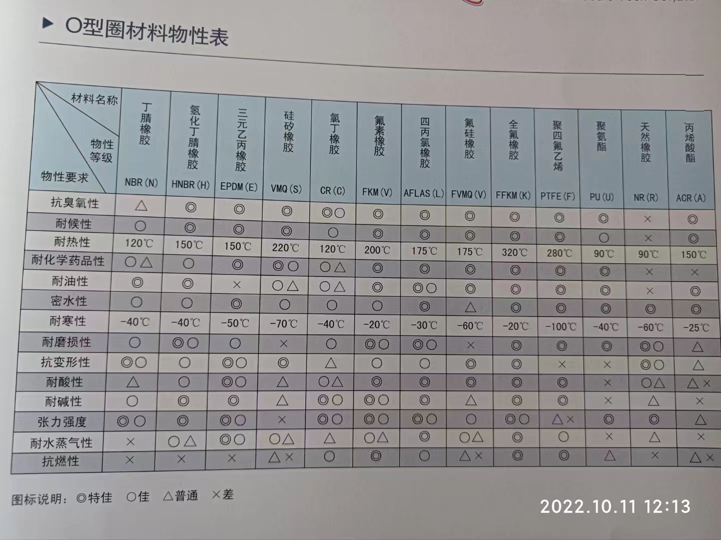 密封圈材質有NBR西腈橡膠密封圈、HNBR氫(qīng)化丁腈(jīng)橡(xiàng)膠(jiāo)密封(fēng)圈、SIL矽橡膠密封圈、VITON氟素橡膠密封圈、FLS氟矽橡膠密封圈、EPDM三元乙丙橡膠密封圈、CR氯丁橡膠密封圈、IIR丁基橡膠密封(fēng)圈。
