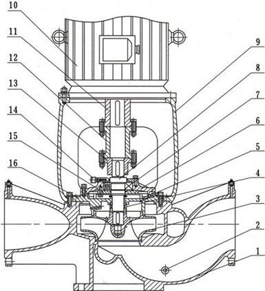 ISGB型便拆式(shì)立式管道泵構造(zào)闡明: