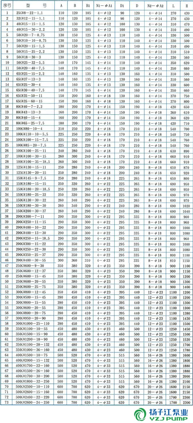 GW型管道式無堵塞排汙泵(安裝尺寸)