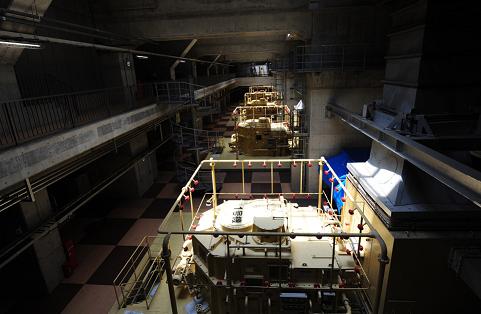 圖為“首都圈外(wài)圍排水路”係統排水(shuǐ)機房內4台使用飛機引擎的大功率抽水泵。