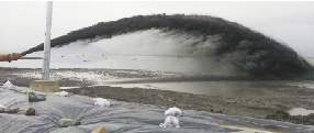 首先,泥漿通過管道被“吹”到填海區(qū) (張妍婷 攝)