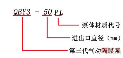四、不鏽鋼316L氣(qì)動隔膜泵型號意義: