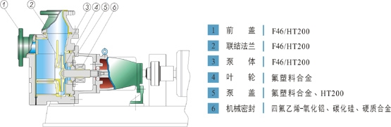 FZB 係列氟塑料自(zì)吸泵是按國際標準並結合非金屬(shǔ)泵的工藝設計製造。泵體采用金屬外殼內襯氟塑料,過(guò)流(liú)部件全部采用氟塑料合金製造,泵蓋、葉輪等均用金屬嵌件外 包氟塑料整體燒結壓製而成,軸封采用外裝式先進的波紋管機械密封(fēng),靜(jìng)環選用99.9%氧化鋁陶瓷(或氮化矽),動環采用四氟填充材料,其耐腐耐磨密封性極 好。泵的進出口(kǒu)均采用鑄鋼體加固,以增強了泵的耐壓性。實(shí)際使用顯示,該泵具有耐腐、耐磨、耐高溫、不老化、機械強度高、運轉平穩、結構先(xiān)進合理、密封性 能嚴格可靠、拆(chāi)卸(xiè)檢修方(fāng)便、使用壽命長等優(yōu)點。