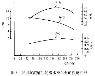 5) 雙流道葉輪的功率(lǜ)曲線較平坦, 在從零揚程到關(guān)死揚程的全揚程範圍(wéi)內的大(dà)軸功率遠小於額定功(gōng)率, 無過載性能好, 可以在全揚程範(fàn)圍內安全運行。