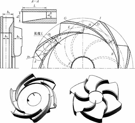 圖(tú)9-17正導葉螺旋線部分(fèn)和擴散段的設計