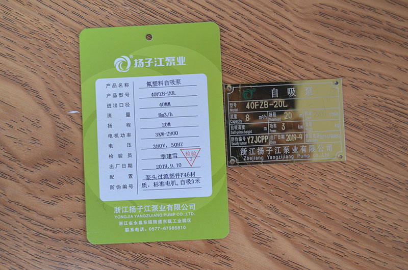 40FZB-20L氟塑料自吸(xī)泵(bèng)