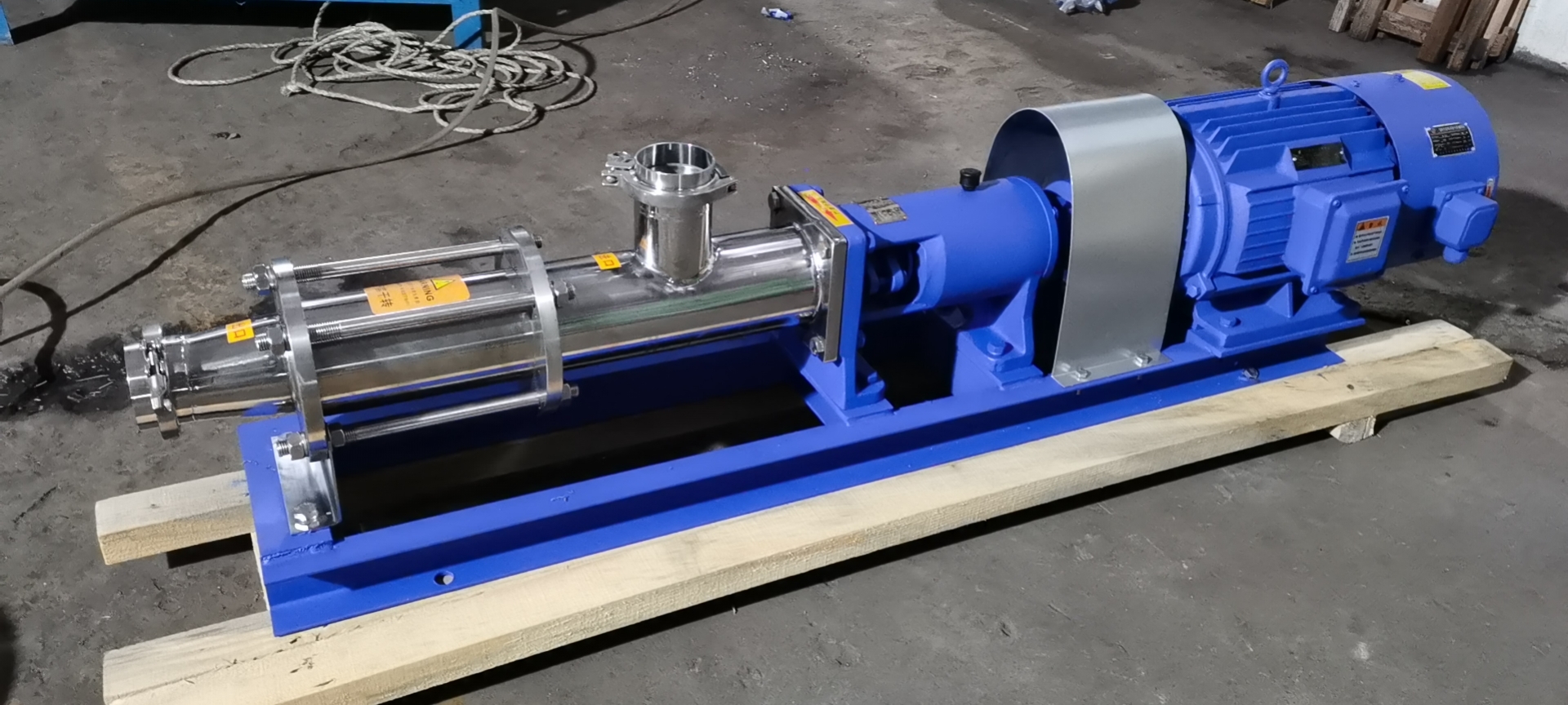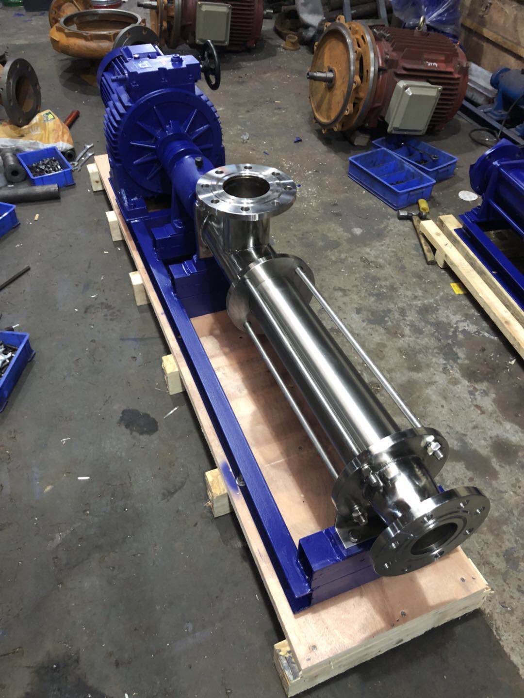 G型單螺杆(gǎn)泵變頻電機配螺旋帶料鬥拋光