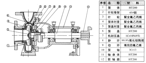 IHF係列氟塑料襯裏離心泵按國際標準設計,泵體采用金屬外殼內襯聚全氟乙丙烯(F46);泵蓋、葉輪和(hé)軸套均用金屬嵌件外包氟塑料整體燒結壓製成型,軸封采用外裝式波紋管機械密封;靜環選用99.9%(氧(yǎng)化鋁(lǚ)陶瓷或氮化矽);動環采用四(sì)氟填(tián)充材料(liào)。其特點是耐腐耐磨(mó)密封性能優越可(kě)靠。