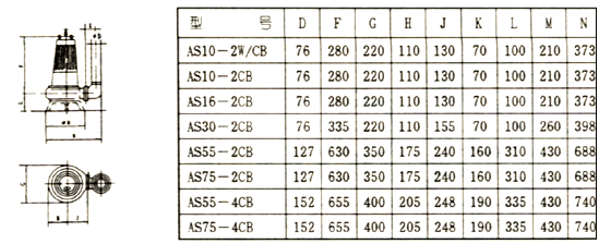 AS型潛水排汙泵外形(xíng)尺(chǐ)寸圖