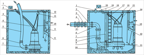 JYWQ自動攪勻潛水(shuǐ)排汙泵安裝方式示意圖