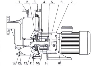 ZBF自(zì)吸式塑料磁力泵結構圖