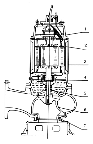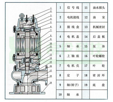 WQ型(xíng)係列無堵(dǔ)塞潛水汙水泵解剖圖