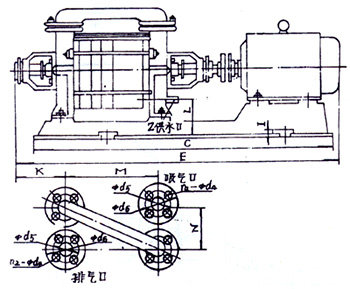 2SK水環真空泵的真空度和抽氣量(liàng)可通過管路上的(de)閘閥來調節。圖中未畫出(chū)。用戶自行安裝。