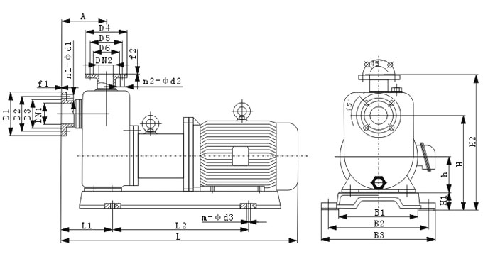 型(xíng)號 | A | B1 | B2 | B3 | h | H | H1 | H2 | L | L1 | L2 | m-φd3 |