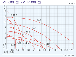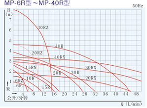 MP型(xíng)磁力驅動循(xún)環泵性(xìng)能曲線圖(tú)